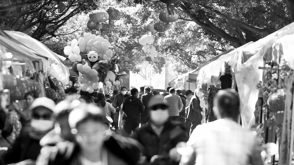 街上人頭攢動,紅燈籠高掛,十分喜慶。