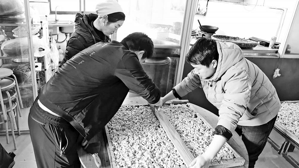 家住蒼山西鎮(zhèn)密場村的楊紅美,今年57歲,在她的記憶里,從小就跟隨母親學(xué)做米花和馓子?!靶r候,每到過年前,鄰里都會邀約,你家拼鍋、我家拼柴,架起鍋、生起火,分工有序地炒米花、炸馓子?!?楊紅美介紹,那時候都是一部分自家享用,一部分送給親戚朋友。后來在親人的鼓勵下,她開始拿到街上售賣,這生意一做就是30多年。