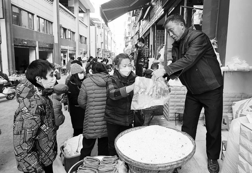 年前的街子天人山人海,街道兩旁擺滿各式各樣的商品,糖果炒貨、水果糕點、肉蛋糧油、農(nóng)家山貨應(yīng)有盡有。大家邊吃邊逛,個個喜笑顏開。