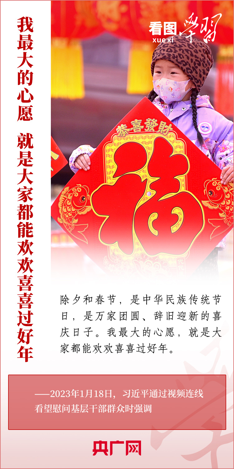 春節(jié)即將到來之際,習近平總書記同黑龍江、福建、新疆、河南、北京、四川等地基層干部群眾視頻連線,看望慰問防疫一線的醫(yī)務人員、福利院的老年朋友、能源保供企業(yè)的員工、高鐵站的干部職工、農產品批發(fā)市場的商戶、鄉(xiāng)村基層的干部群眾,給大家送去黨中央的關心、慰問和祝福。