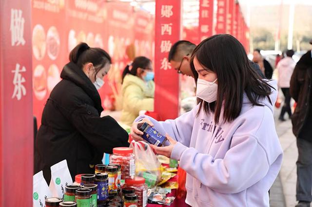 “從前,買年貨要東奔西跑。今年,這里的山貨節(jié)什么物品都有,一站式就買夠了?!闭谔暨x香菇醬的王秀接過話茬。