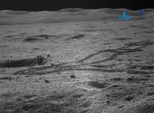 總臺央視記者 李寧:可以看到月球的地形地貌坑坑洼洼,路況還是比較差的。這個(gè)是玉兔二號已經(jīng)行駛過的車轍印,它在這個(gè)區(qū)域進(jìn)行了一個(gè)爬坡,隨后它開始進(jìn)入相對平緩的路段,可以看到非常清晰的車轍印。