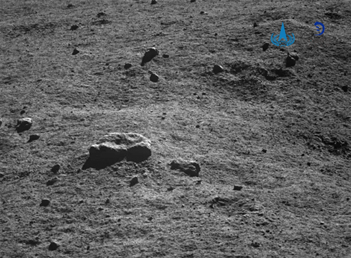 △第50月晝期間,當(dāng)玉兔二號月球車行駛至LE05005點(diǎn)時(shí),全景相機(jī)拍攝的多個(gè)大小不一撞擊坑圖。