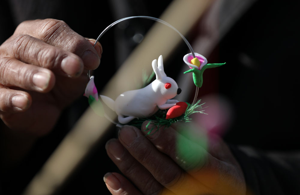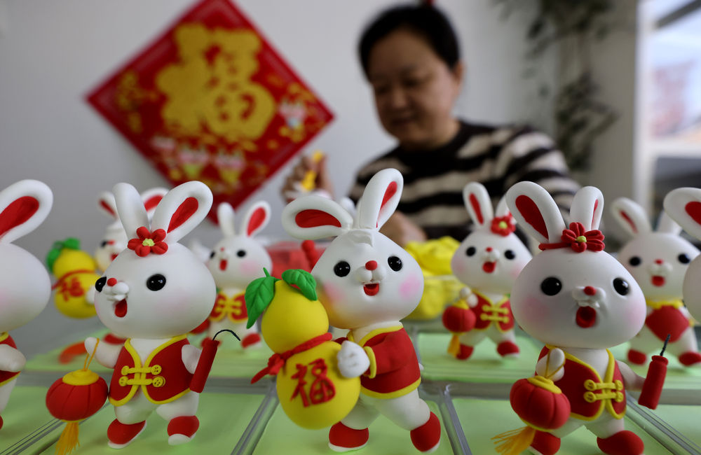 農(nóng)歷兔年春節(jié)臨近,人們制作、購(gòu)買各種兔元素的飾品和工藝品等,喜氣洋洋迎新春。