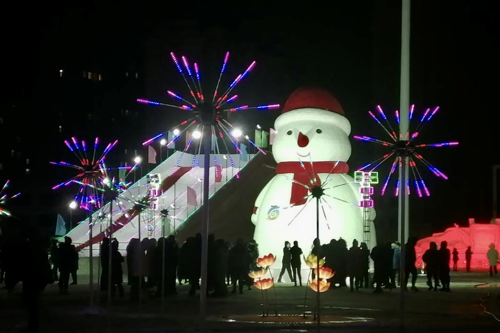 黑龍江省雙鴨山市“網(wǎng)紅”大雪人吸引市民前來打卡。(受訪者供圖)
