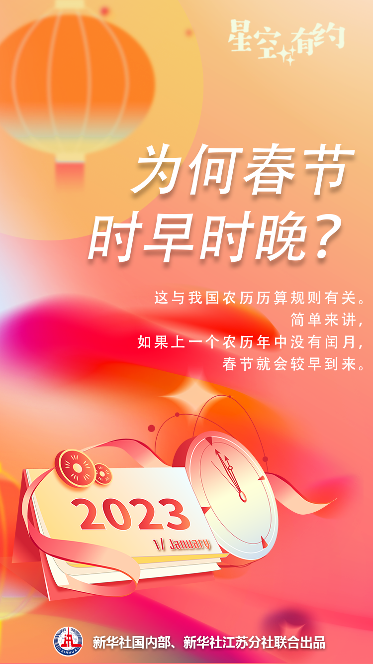 今天是傳統(tǒng)的節(jié)日春節(jié),細(xì)心的公眾可能發(fā)現(xiàn),相比前兩年,今年春節(jié)來得較早。為什么春節(jié)日期時(shí)早時(shí)晚?天文科普專家介紹,這與我國(guó)農(nóng)歷歷算規(guī)則有關(guān)。簡(jiǎn)單來講,如果上一個(gè)農(nóng)歷年中沒有閏月,春節(jié)就會(huì)較早到來。