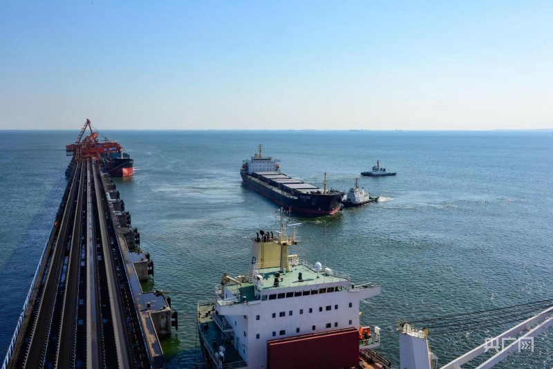 △秦皇島港的貨輪和裝船機(jī)(河北港口集團(tuán)供圖)