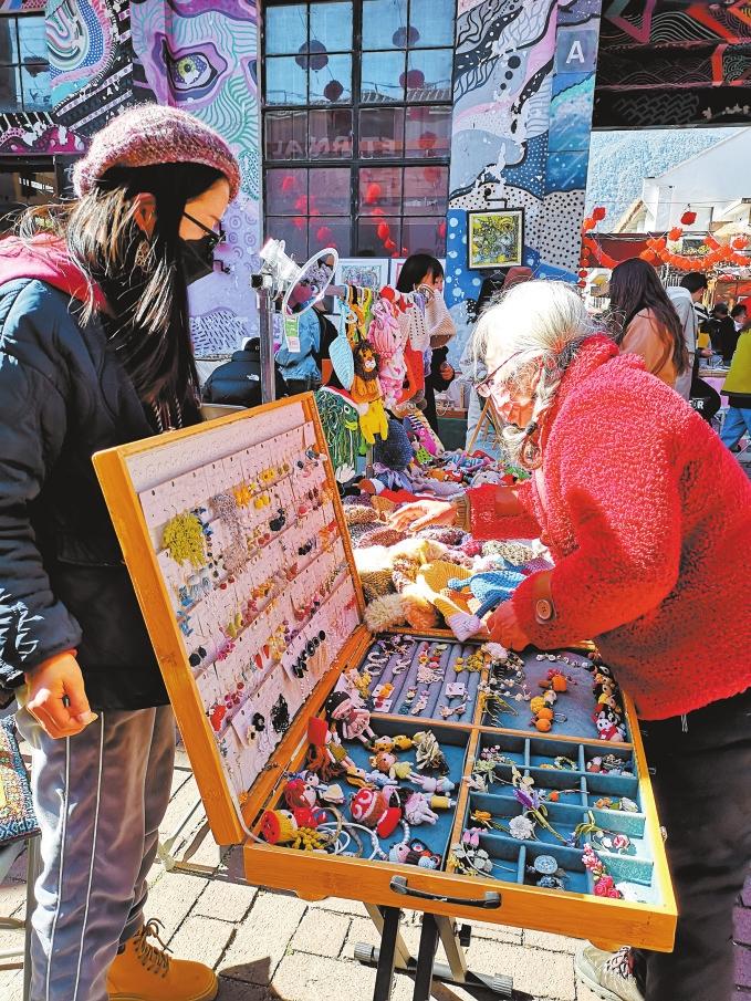“這里初一到初七都有集市,這兩三天我每天接待的顧客不下四五千人?!痹诖罄砉懦谴矄螐S藝術(shù)集市,擺攤做植物染手工縫裙的沈陽姑娘劉睿博說。