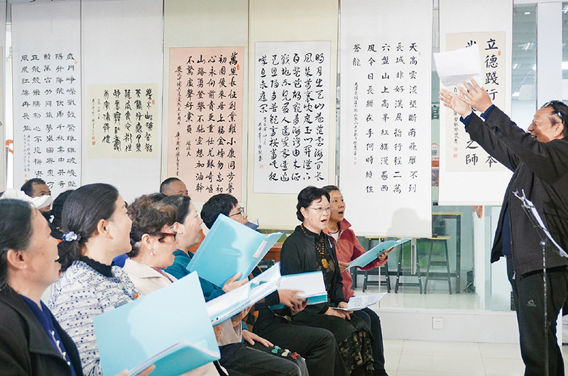2022年11月8日,貴州省貴陽市觀山湖區(qū)金元社區(qū)的居民在老年學(xué)校合唱班參加活動(dòng)。