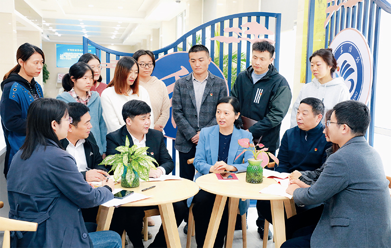 2022年11月22日,在江蘇省常州市武進(jìn)區(qū)人民來訪接待中心,黨的二十大代表與武進(jìn)區(qū)信訪局黨員干部交流學(xué)習(xí)黨的二十大精神體會,討論如何在基層信訪工作中抓好貫徹落實(shí)。 江蘇省常州市武進(jìn)區(qū)信訪局供圖 徐晶瑋/攝