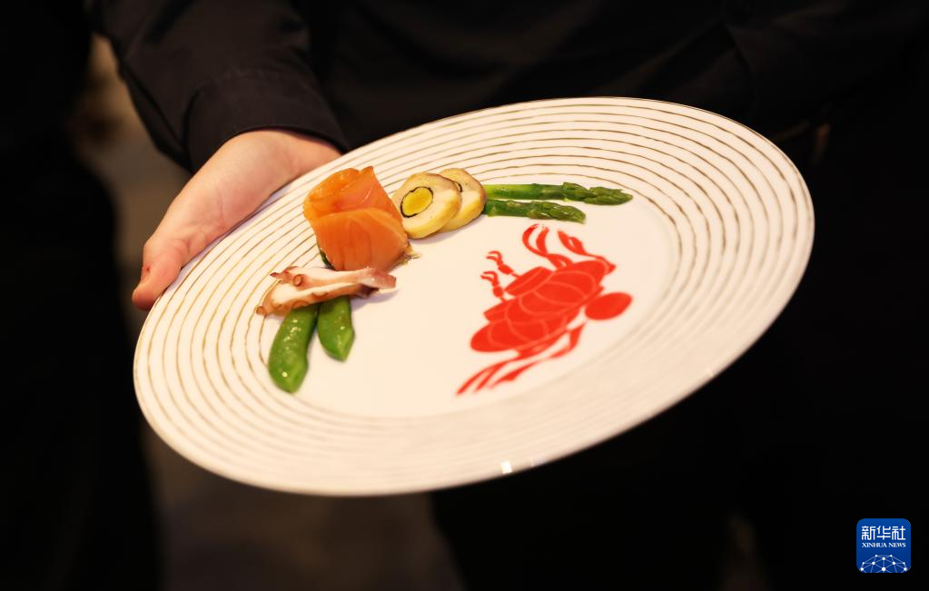 1月23日,中國(guó)駐法國(guó)大使館在位于巴黎的聯(lián)合國(guó)教科文組織總部舉辦“中法美食文化之夜”活動(dòng)。這是活動(dòng)中,工作人員端上佳肴。新華社記者 高靜 攝