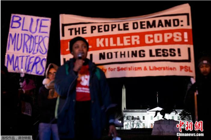 2023年1月27日,在華盛頓白宮外的拉斐特公園,抗議者舉行活動(dòng)抗議29歲非裔青年尼科爾斯被警察暴力執(zhí)法致死事件。