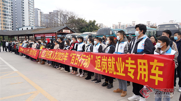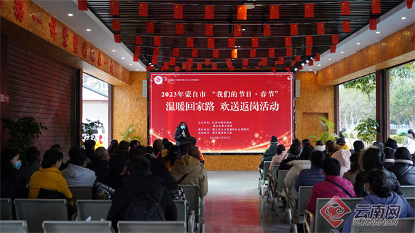 1月27日,農(nóng)歷正月初六,又到務工返崗時。紅河哈尼族彝族自治州蒙自市在當?shù)亍敖ㄔO者之家”舉辦2023年第一批赴省外務工人員歡送儀式,以“點對點”方式,安排專車輸送300余名赴浙江、江蘇、廣東務工人員啟程返崗。