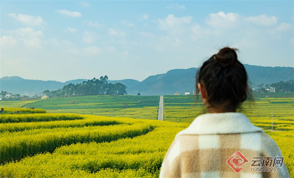 遠看,入眼處盡是連綿的金色濤浪,好似燃燒的火焰,驅(qū)散了冬的寒意。近看,在陽光與微風(fēng)中搖曳的花枝,猶如靈動的少女,展示著春的俏皮。