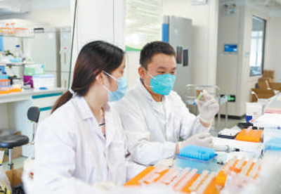 劉成立(右)與同事在崖州灣種子實驗室工作。符武平攝