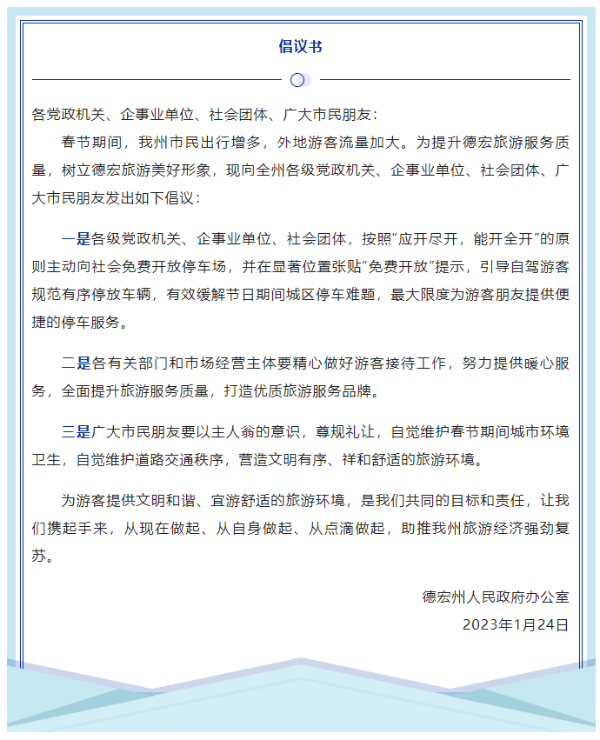 德宏州芒市各單位也主動向社會免費開放停車場,并在顯著位置張貼“免費開放”提示,最大限度地緩解節(jié)日期間城區(qū)停車難題,為游客提供便捷的停車服務。