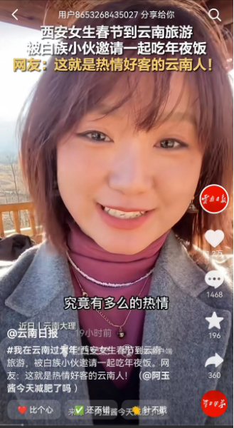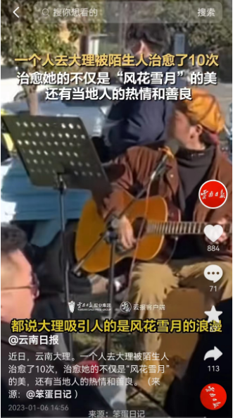 一位特別鐘愛云南的網友近日發(fā)布視頻稱,自己在大理旅游,被治愈了10次。旅途中,有餐館老板送上的美食,有當地人熱情的邀請,她表示這份感動不僅來自“風花雪月”,還有當地人的熱情和善良。