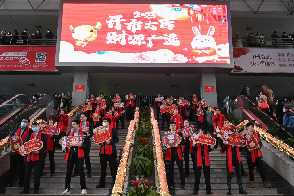 這是被稱為“世界超市”的義烏中國小商品城在中國疫情防控進(jìn)入新階段后的首個(gè)市場開市日。記者看到各區(qū)商戶貼春聯(lián)、掛花燈、上新品,面貌一新迎開市,而操著不同口音的采購商,往來于各家商戶,他們抱著同樣的想法——搶商機(jī)、談合作。