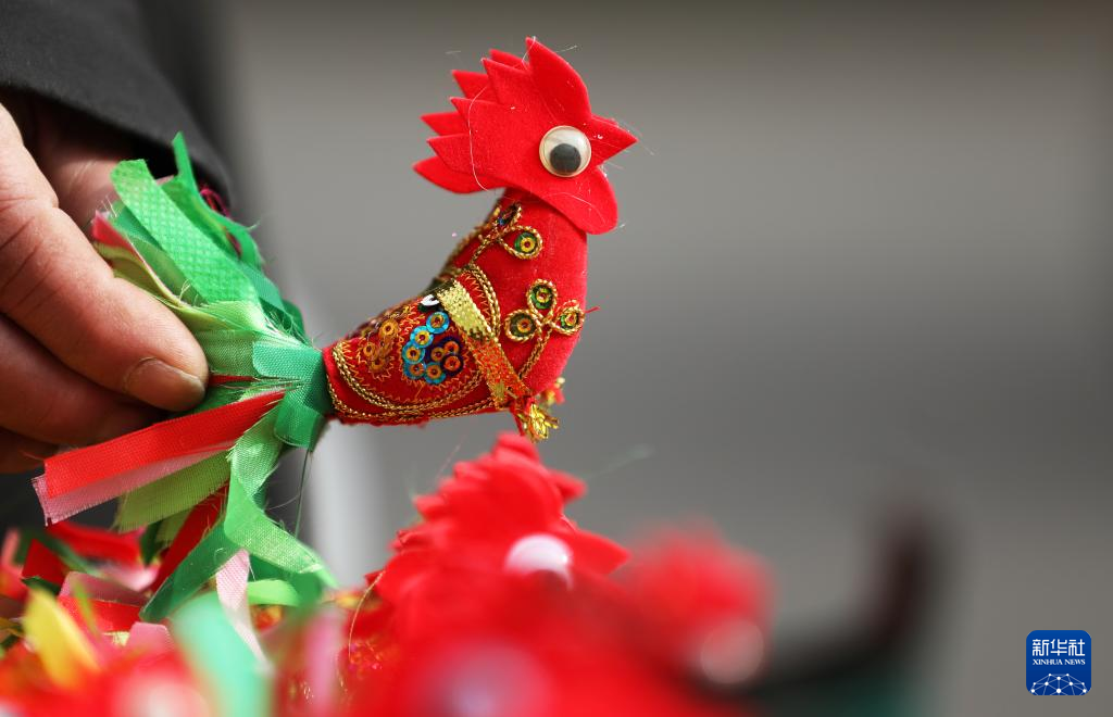 立春將至,山東省臨沂市郯城縣的民間手工藝人忙著用彩色棉布和棉線等縫制“春雞”。魯南部分地區(qū)有在立春給孩子佩戴“春雞”的習(xí)俗,以此希望孩子在新的一年里茁壯成長、吉祥平安。
