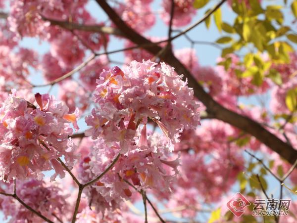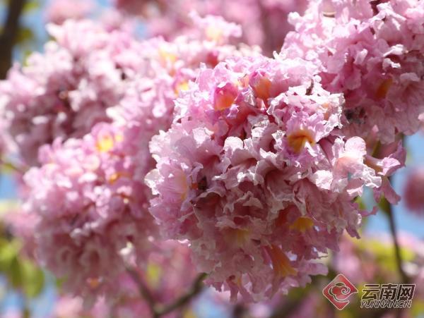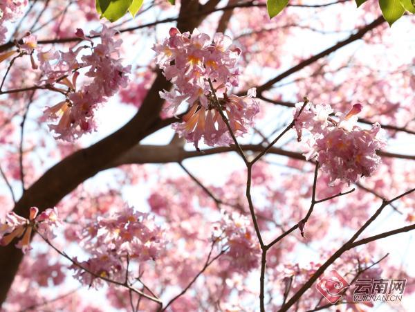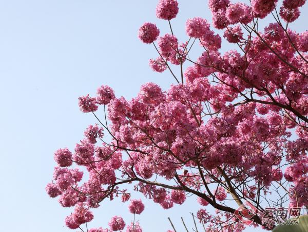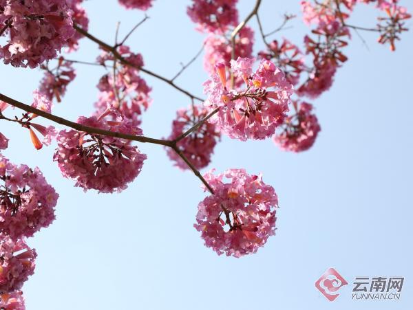 春天來了,紅河哈尼族彝族自治州開遠市鳳凰生態(tài)公園的紫花風(fēng)鈴木絢爛綻放,粉紫碩大的花朵像一個個大繡球隨風(fēng)搖曳,美不勝收。艷麗的花朵,帶來了春的氣息,引來無數(shù)蜜蜂采蜜,也吸引了大量踏春出游的市民駐足賞花。(云南網(wǎng)通訊員 國福祥 黃春燕 李雪瓊 記者 饒勇)