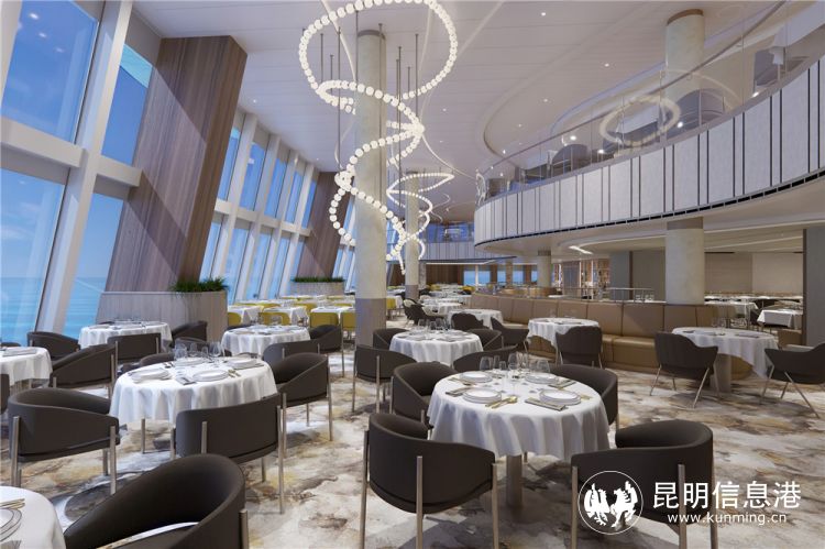 地平線餐廳首次入駐公主郵輪,采用極具震撼效果的三層挑高結構。這個充滿創(chuàng)意的空間秉承開放與靈活的設計理念,為賓客提供多元感官體驗。波瀾壯闊的海上美景和渾然天成的自然光線完美地襯托出從6層一直延伸到8層的裝飾性雕塑作品。每層甲板風格迥異,營造出不同的用餐體驗和氛圍。