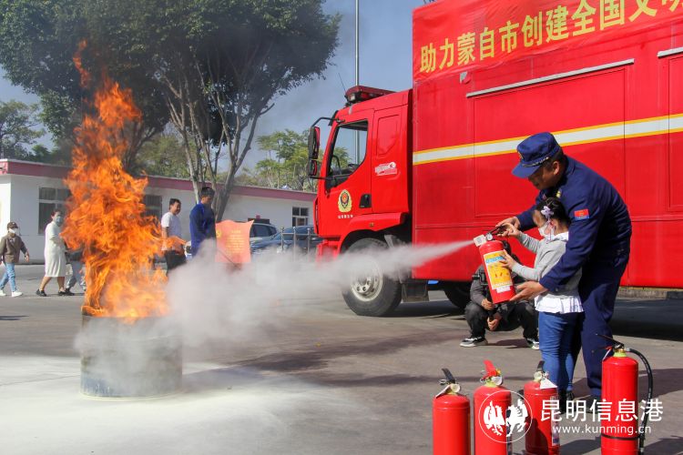 “各位同學(xué),如果發(fā)生火災(zāi),應(yīng)及時撥打‘119’火警電話,迅速報警,報警時要講明詳細(xì)地址、起火部位、著火物質(zhì)、火勢大小等?!?月11日上午,在蒙自市級行政中心廣場,蒙自市消防救援大隊以蒙自市創(chuàng)建第七屆全國文明城市動員大會為契機(jī),開展消防安全宣傳活動,傳播文明新風(fēng),助力創(chuàng)文工作走深走實(shí)的同時,積極發(fā)動各單位場所、廣大群眾參與到學(xué)校消防安全宣傳工作中,多措并舉、齊抓共管,實(shí)現(xiàn)“教育一個孩子,帶動一個家庭,影響整個社會”目標(biāo)。