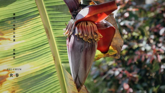 芭蕉是一種生長(zhǎng)在熱帶的水果,外形和口感有些類似于香蕉,芭蕉花就是芭蕉的花蕾。在東回鎮(zhèn)的村寨里,有一片郁郁蔥蔥的芭蕉林,這里的芭蕉樹一年四季都會(huì)開花,一朵朵紫紅色花朵掛在枝頭,好似含苞待放的荷花。