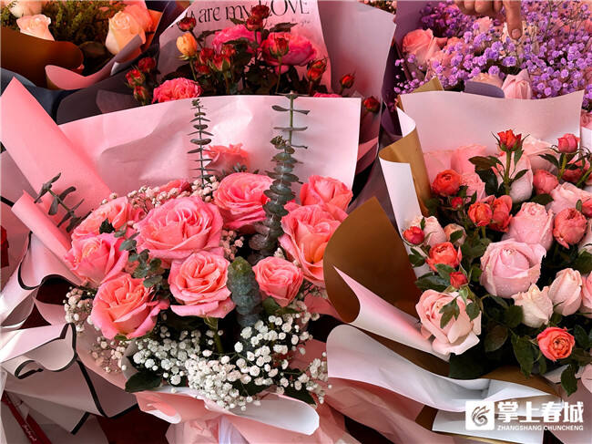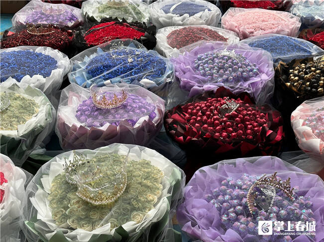“我們花店2月初就開始接受預訂了,光昨天下午就已經接了60多單預訂了,今年節(jié)日期間的單量還是很可觀的?!眽艉ǖ陜?,店長王萍茹介紹。