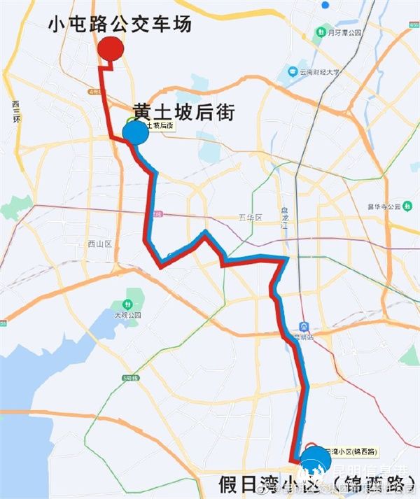 90路調(diào)整后,去程(開(kāi)往假日灣小區(qū)方向)由“小屯路公交車場(chǎng)”始發(fā),經(jīng)小屯路、大塘路、昆武輔道、二環(huán)西路、滇緬大道回原線行駛至“假日灣小區(qū)(錦西路)”終到,回程(開(kāi)往小屯路公交車場(chǎng)方向)由“假日灣小區(qū)(錦西路)”始發(fā),按原線行駛至滇緬大道,經(jīng)二環(huán)西路、昆武輔道、大塘路、小屯路行駛至“小屯路公交車場(chǎng)”終到。90路將新增??俊靶⊥吐饭卉噲?chǎng)(新起始站)、王筇路口(小屯路)(去)、大塘路口(小屯路)(回)、小屯路口(大塘路)(去)、黃土坡立交橋北口、黃土坡、普吉路口(滇緬大道)(去)”等7個(gè)公交站點(diǎn),同時(shí)取消??俊包S土坡后街”(原起始站)。