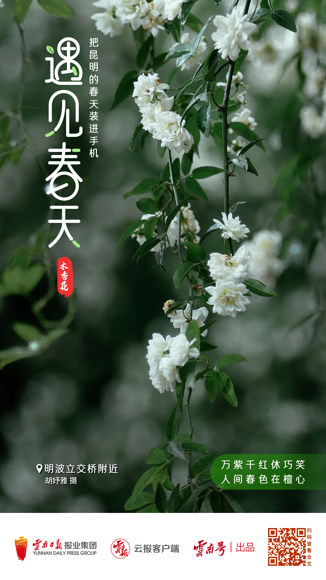 圖為2022年4月1日,明波立交橋附近如瀑布一般盛大又清冷的木香花。進(jìn)入雨季,木香花濕雨沉沉。汪曾祺筆下,昆明的木香花很多——小河沿岸都是木香花。云南日報(bào)記者 胡妤雅 攝