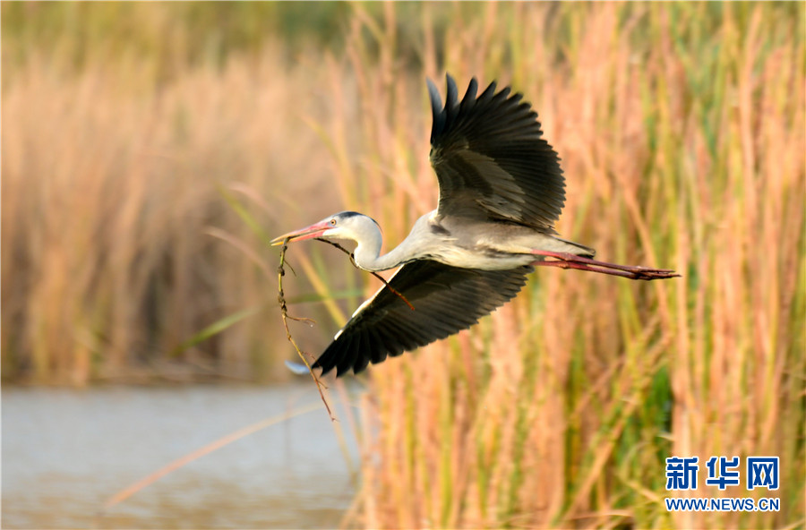 2月15日,云南省彌勒市湖泉生態(tài)園內(nèi),蒼鷺嘴銜樹枝忙筑巢。新華網(wǎng)發(fā)(普佳勇/攝)