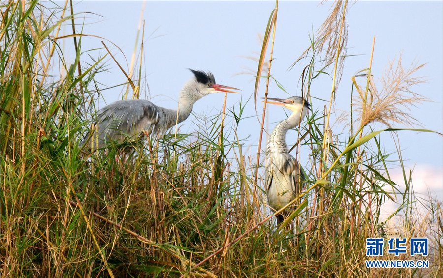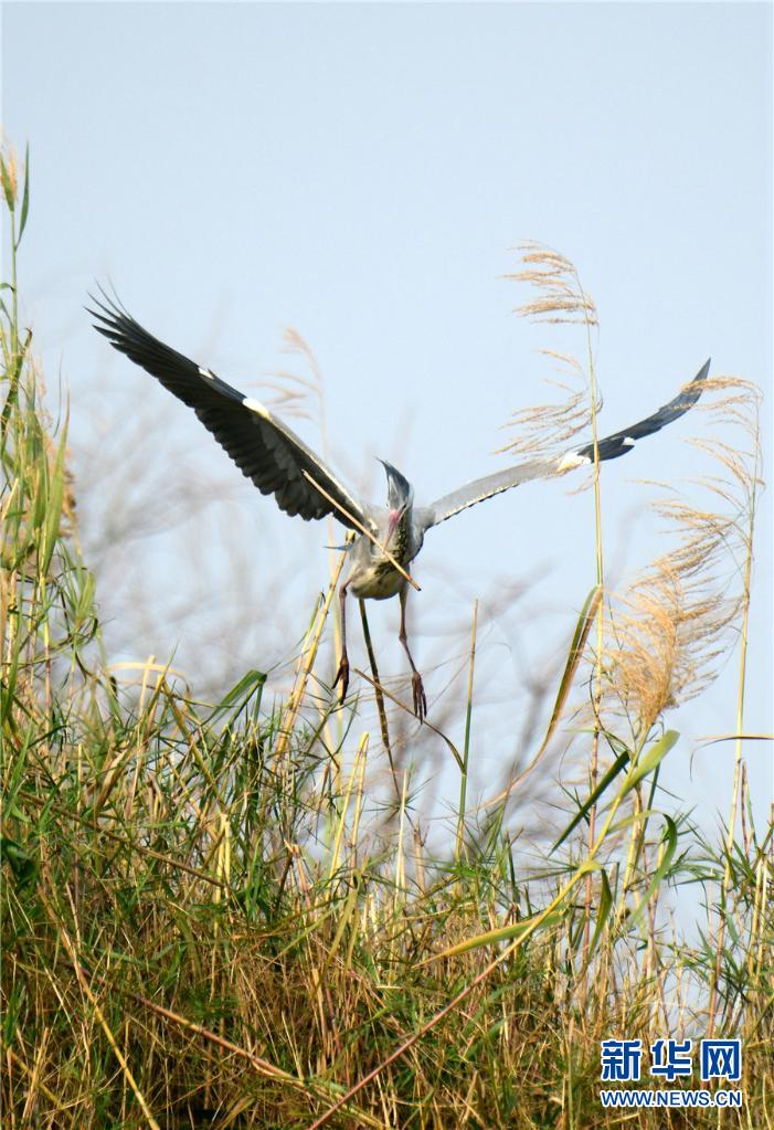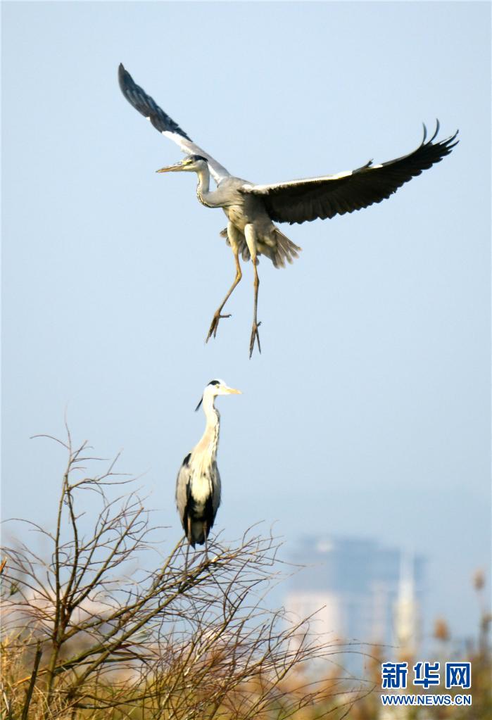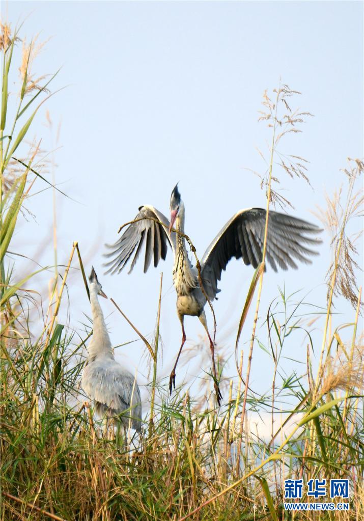 2月15日,云南省彌勒市湖泉生態(tài)園內(nèi),蒼鷺蹁躚起舞。新華網(wǎng)發(fā)(普佳勇/攝)