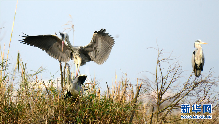 近日,在云南省彌勒市湖泉生態(tài)園內(nèi),蒼鷺蹁躚起舞,嘴銜樹枝忙筑巢,畫面清新可愛(ài)。近年來(lái),隨著當(dāng)?shù)夭粩嗉訌?qiáng)生態(tài)環(huán)境保護(hù),每年都吸引大量水鳥來(lái)此棲息繁衍。新華網(wǎng)發(fā)(普佳勇攝)
