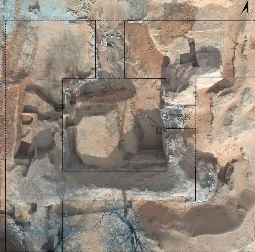 中心樓原本為一座高臺(tái)樓閣建筑,位于清平堡的中心位置,現(xiàn)僅存臺(tái)體部分,臺(tái)體下設(shè)四出券洞,連接堡內(nèi)四條主干街道。中心樓本身及其在城址中的建筑布局,最早可追溯到漢代的市場(chǎng),反映出營(yíng)堡的商業(yè)功能屬性。南門(mén)位于清平堡南城墻中部,與中心樓南側(cè)券洞正對(duì),門(mén)外設(shè)甕城,具有軍事防御屬性。