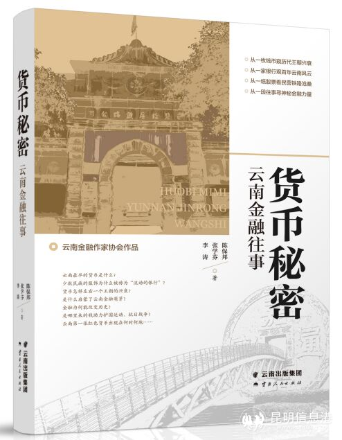 昆明信息港訊 記者甘凌菲 云南最早的貨幣是什么?少數(shù)民族的服飾為什么被稱為“流動(dòng)的銀行”?貨幣怎樣左右一個(gè)王朝、一個(gè)地方的興衰?是什么啟蒙了云南金融萌芽?金融為何能改變歷史?是哪里來(lái)的錢助力護(hù)國(guó)運(yùn)動(dòng)、抗日戰(zhàn)爭(zhēng)?云南第一張紅色貨幣出現(xiàn)在何時(shí)何地?日前,由云南金融作家協(xié)會(huì)主席陳保邦、秘書(shū)長(zhǎng)張學(xué)芬、副秘書(shū)長(zhǎng)李濤歷時(shí)二年精心創(chuàng)作的《貨幣秘密:云南金融往事》出版發(fā)行,將為大家一一揭秘。