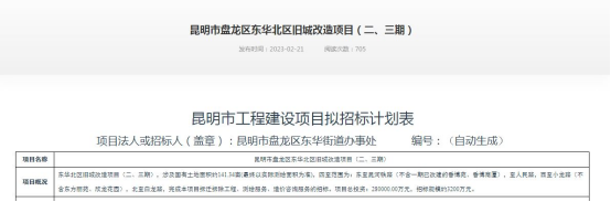 昆明信息港訊(昆明日報 全媒體記者李夢瑤)2月21日,云南省公共資源交易信息網(wǎng)發(fā)布昆明市盤龍區(qū)東華北區(qū)舊城改造項目(二、三期)招標計劃,涉及國有土地面積94226平方米,約141.34畝。