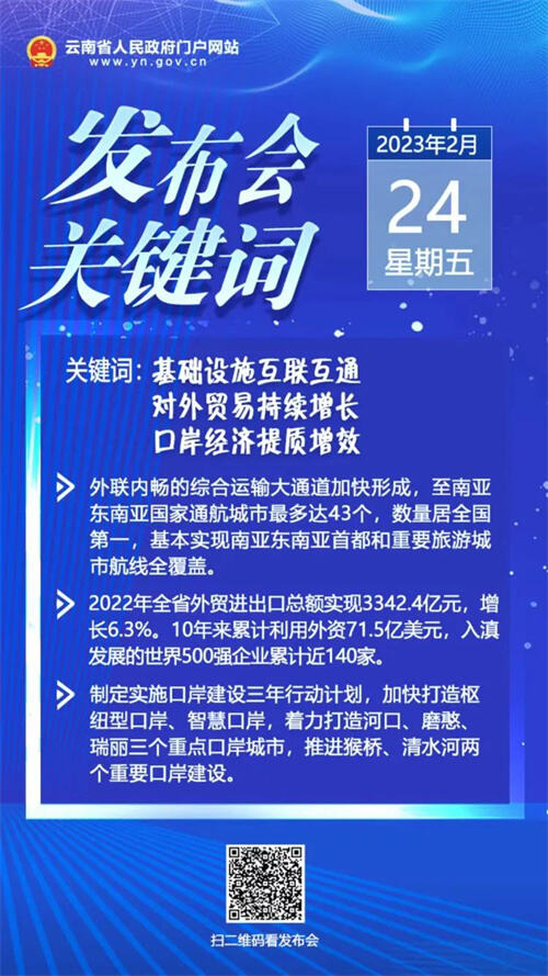 云南省商務廳:省委、省政府高度重視口岸工作,先后作出了加快智慧口岸建設,大力發(fā)展口岸經(jīng)濟,一體推進口岸功能提升、口岸經(jīng)濟發(fā)展、口岸城市建設等決策部署,云南口岸建設發(fā)展進入了“快車道”。2022年以來,重點抓了三個方面工作: