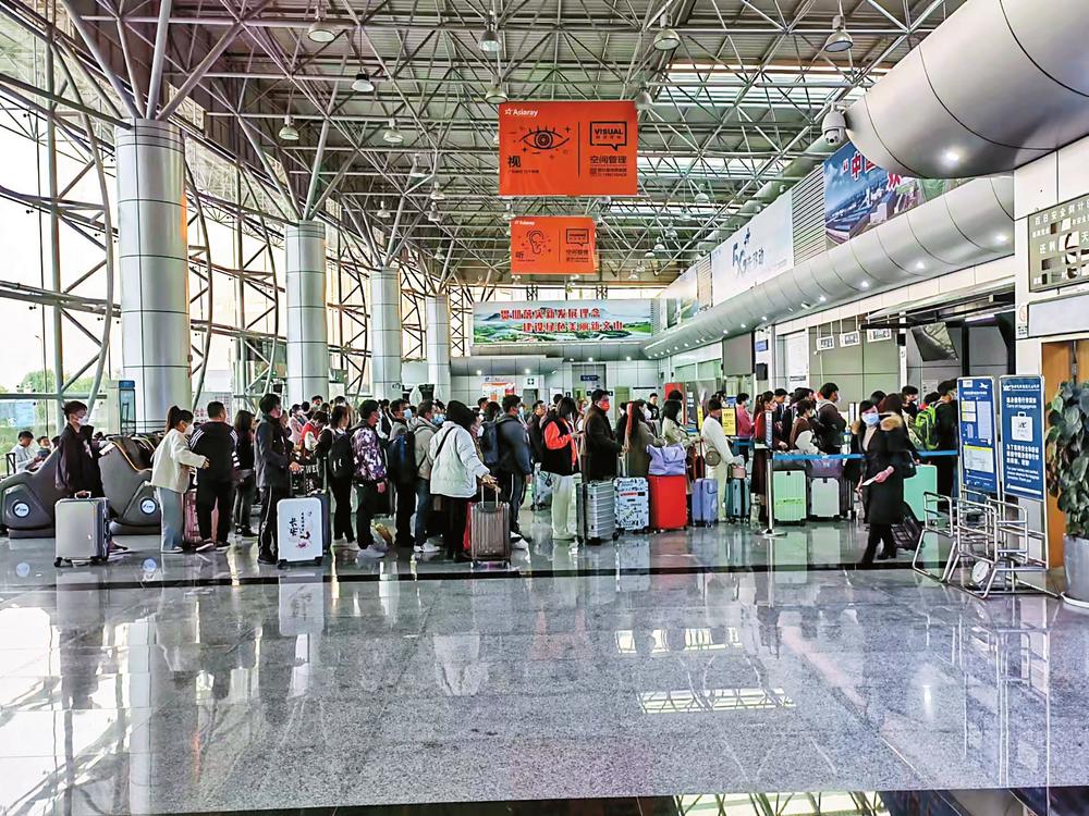 文山機(jī)場(chǎng)候機(jī)旅客有序辦理值機(jī)手續(xù)