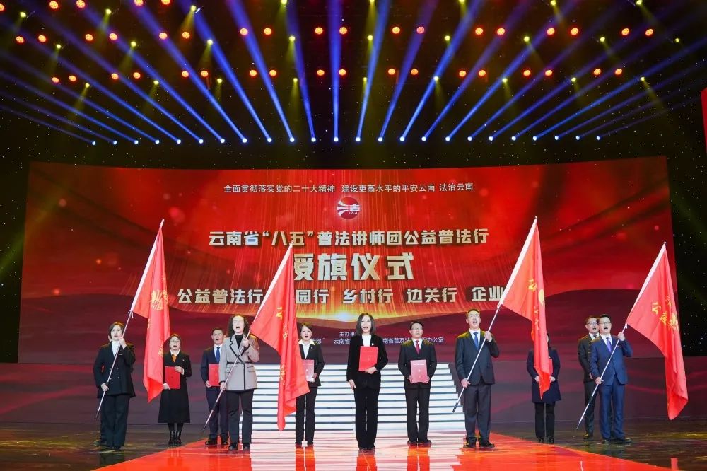 活動現(xiàn)場還進行了“2023年云南省普法強基法律常識在線答題”活動啟動儀式,并為云南省“八五”普法講師團成員代表頒發(fā)聘書、為“公益普法行”授旗。