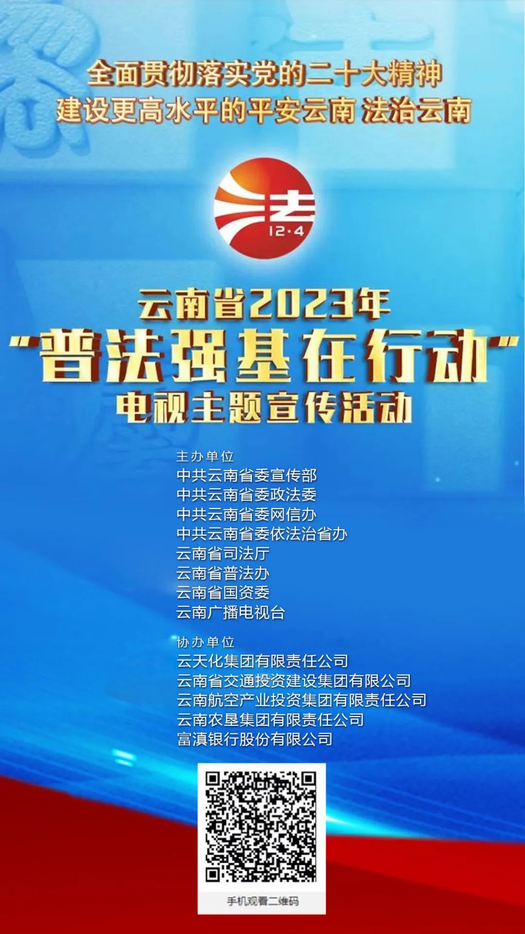 活動由云南省委宣傳部、省委政法委、省委網(wǎng)信辦、省委依法治省辦、省司法廳、省普法辦、省國資委、云南廣播電視臺聯(lián)合主辦,云天化集團、省交投集團、云南航產(chǎn)投集團、云南農(nóng)墾集團、富滇銀行協(xié)辦。