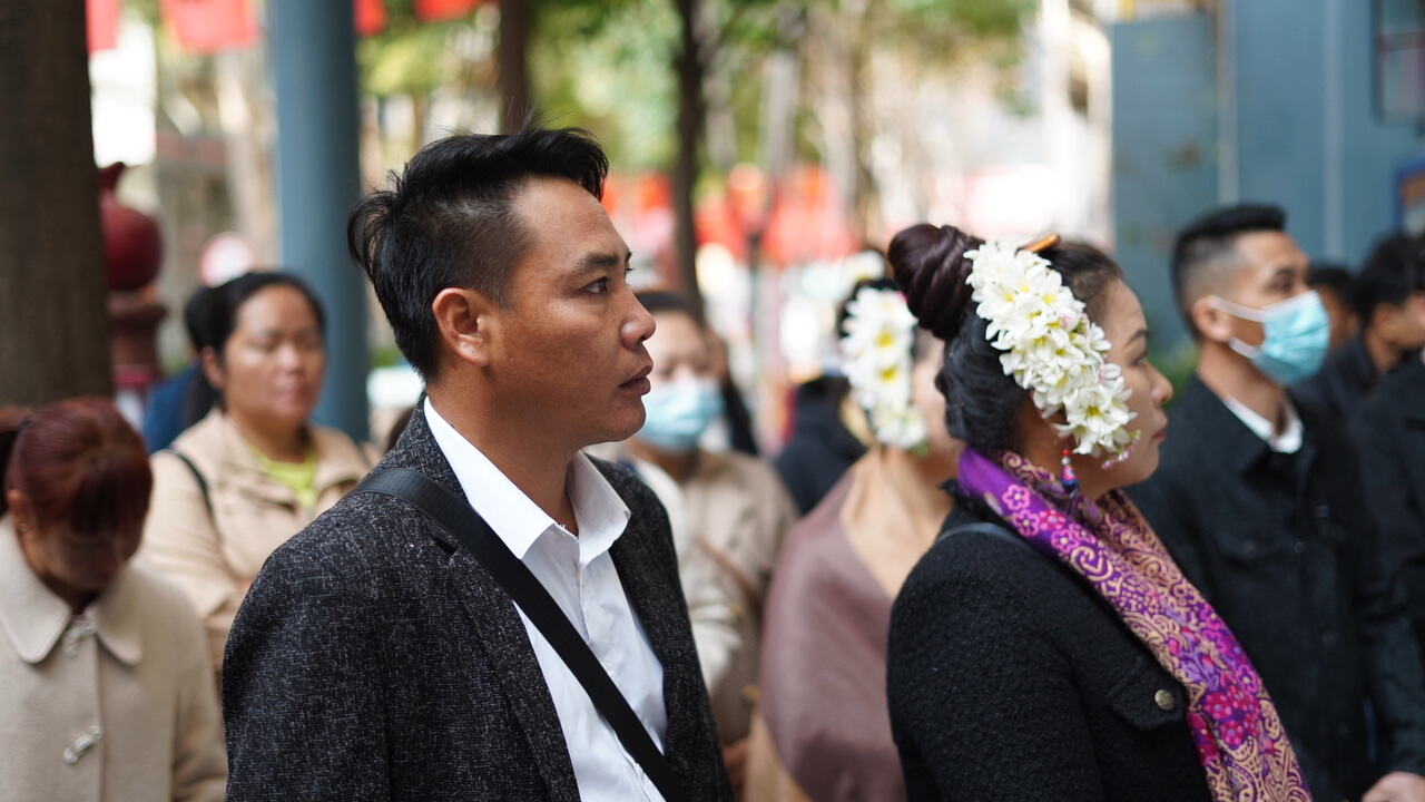 24日上午,官渡區(qū)舉行關(guān)上中心區(qū)社區(qū)、磨憨鎮(zhèn)曼莊村共建民族團(tuán)結(jié)進(jìn)步聯(lián)盟簽約儀式。儀式上,曼莊村的干部們還在相互提醒注意記錄:“多拍點(diǎn)資料,看看別人是怎么列制度的,回去借鑒一下!”