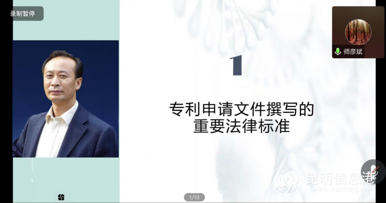 昆明市科技型中小企業(yè)技術創(chuàng)新基金管理中心研究員向蘭老師圍繞企業(yè)知識產(chǎn)權管理工作現(xiàn)狀、企業(yè)知識產(chǎn)權管理、專利信息檢索、企業(yè)知識產(chǎn)權運營、企業(yè)知識產(chǎn)權戰(zhàn)略等五個方面內(nèi)容,作了題為《企業(yè)知識產(chǎn)權管理與運用》的專題分享。