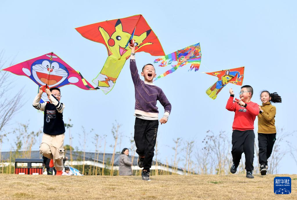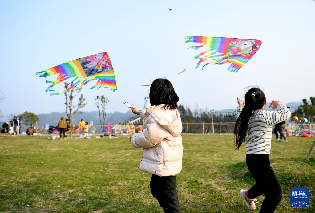 春光明媚,人們踏青出游,放飛風(fēng)箏,樂享春日美好時光。