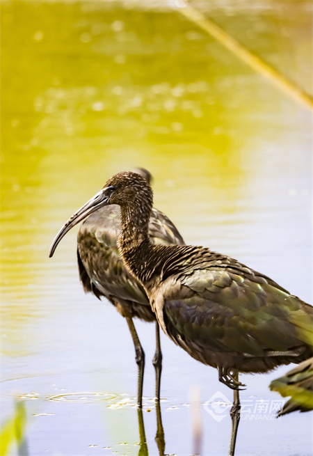 2月17日,幾只國家一級保護(hù)動(dòng)物彩鹮,出現(xiàn)在大理洱海淺海灘涂上棲息、覓食。