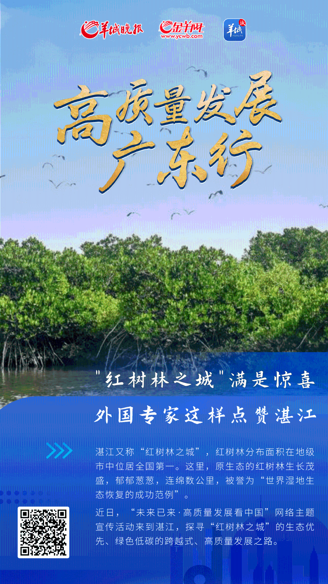 近日,羊城晚報(bào)全媒體記者跟隨由中央網(wǎng)信辦網(wǎng)絡(luò)傳播局指導(dǎo),廣東省委網(wǎng)信辦和人民網(wǎng)聯(lián)合主辦的“未來已來·高質(zhì)量發(fā)展看中國(guó)”網(wǎng)絡(luò)主題宣傳活動(dòng)來到湛江,探尋“紅樹林之城”的生態(tài)優(yōu)先、綠色低碳的跨越式、高質(zhì)量發(fā)展之路。