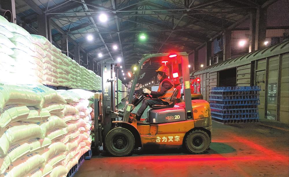近日,水富市水富火車站云天化專用線一派繁忙,10余臺叉車正有條不紊地將2100余噸尿素裝運到33節(jié)車廂內,這批化肥將發(fā)往昆明、玉溪、大理、紅河等地。為全力保障春耕物資通道暢通,水富火車站將云天化尿素納入重點貨物運輸,開辟專用運輸綠色通道,每日對化肥從運輸配空、對位、裝車、掛運各環(huán)節(jié)實行全鏈條管理,24小時動態(tài)掌握物資運輸需求,隨時作出運力調整,確保不誤農時。
