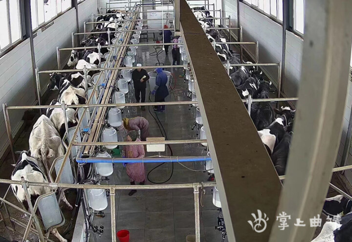 “擠奶廳里有最先進(jìn)的擠奶機(jī)器,每天能產(chǎn)1.3噸左右的鮮奶。自從擴(kuò)大規(guī)模后,我們還到村子里去收購(gòu)散戶的鮮奶,每公斤6元至7元,一天大概收購(gòu)20噸,所有的鮮奶拉到昆明的一個(gè)廠去加工?!泵峡⌒ひ贿吙瓷窖蛞贿呎f(shuō)。