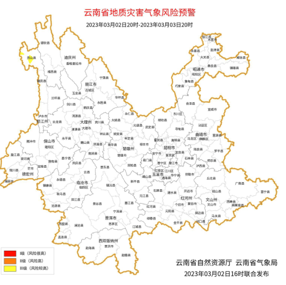 地質(zhì)災害方面,3月02日20時至3月03日20時,怒江州西北部發(fā)生滑坡、泥石流的風險較高。