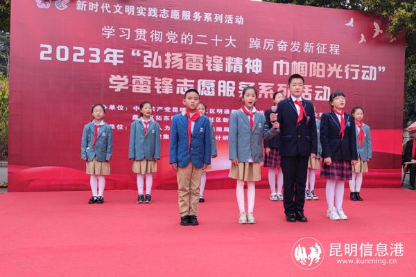 該校少先隊(duì)員代表和預(yù)備隊(duì)員代表來(lái)到拓東街道明通巷社區(qū),參與社區(qū)開展的“學(xué)習(xí)貫徹二十大 踔厲奮發(fā)新征程”學(xué)雷鋒志愿服務(wù)主題活動(dòng)。聆聽老黨員重溫入黨誓詞,講述學(xué)雷鋒的故事,接受雷鋒英雄事跡的洗禮。明通小學(xué)2021級(jí)第二批新生還在社區(qū)參加了少先隊(duì)入隊(duì)儀式。