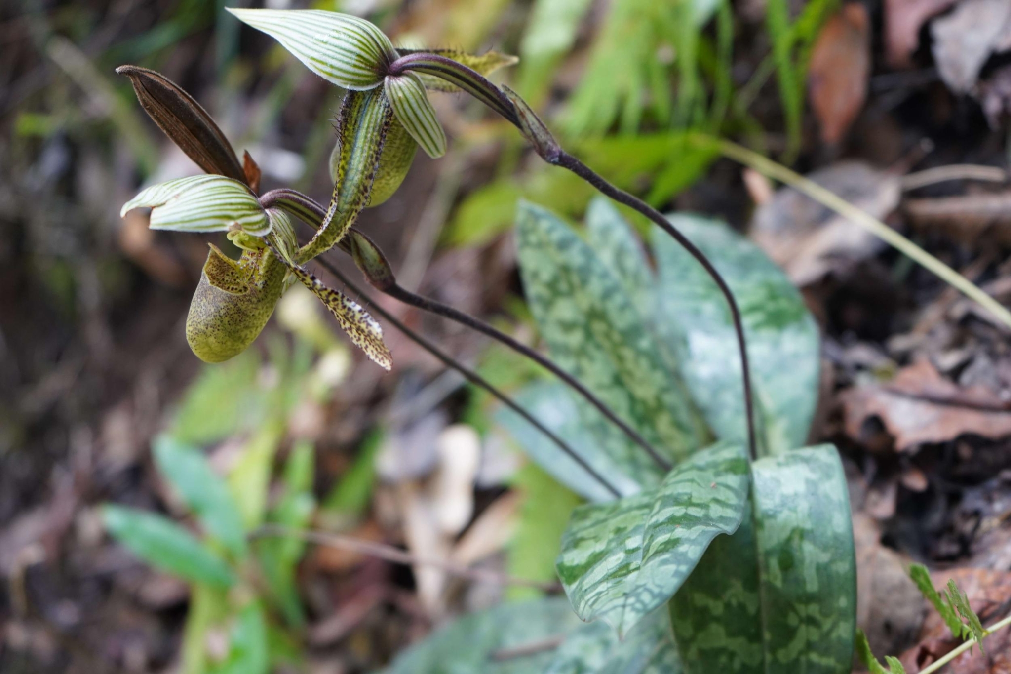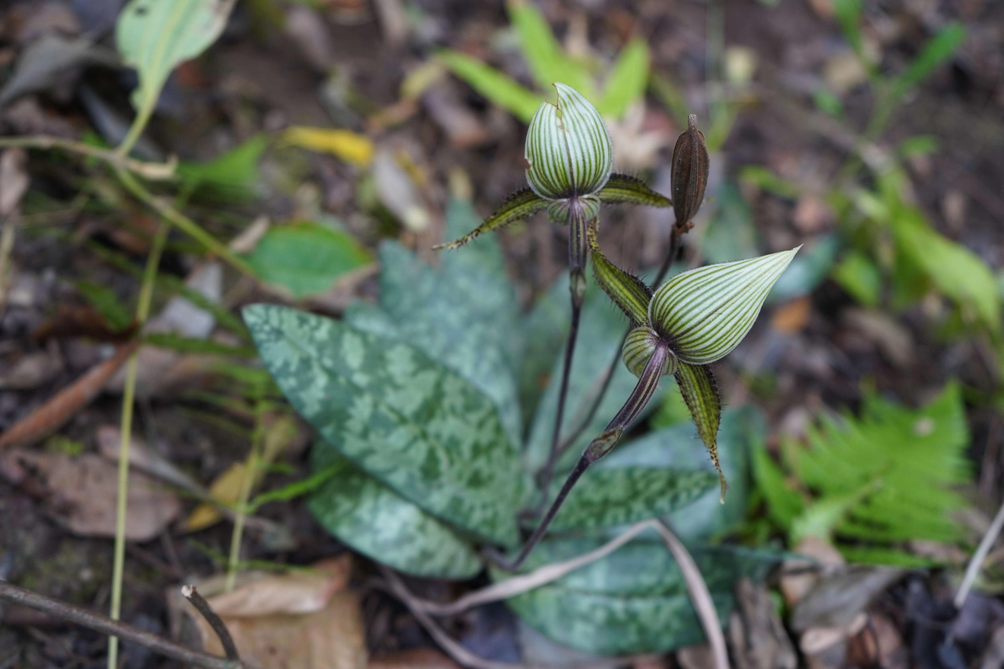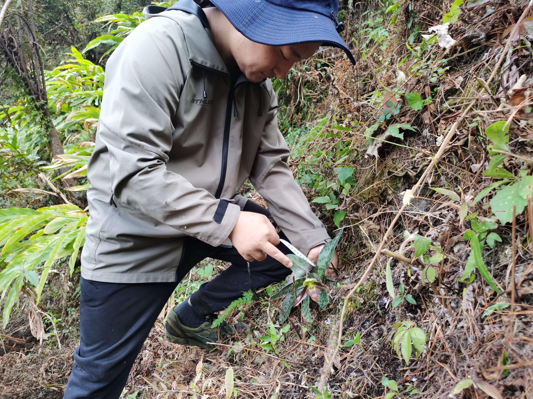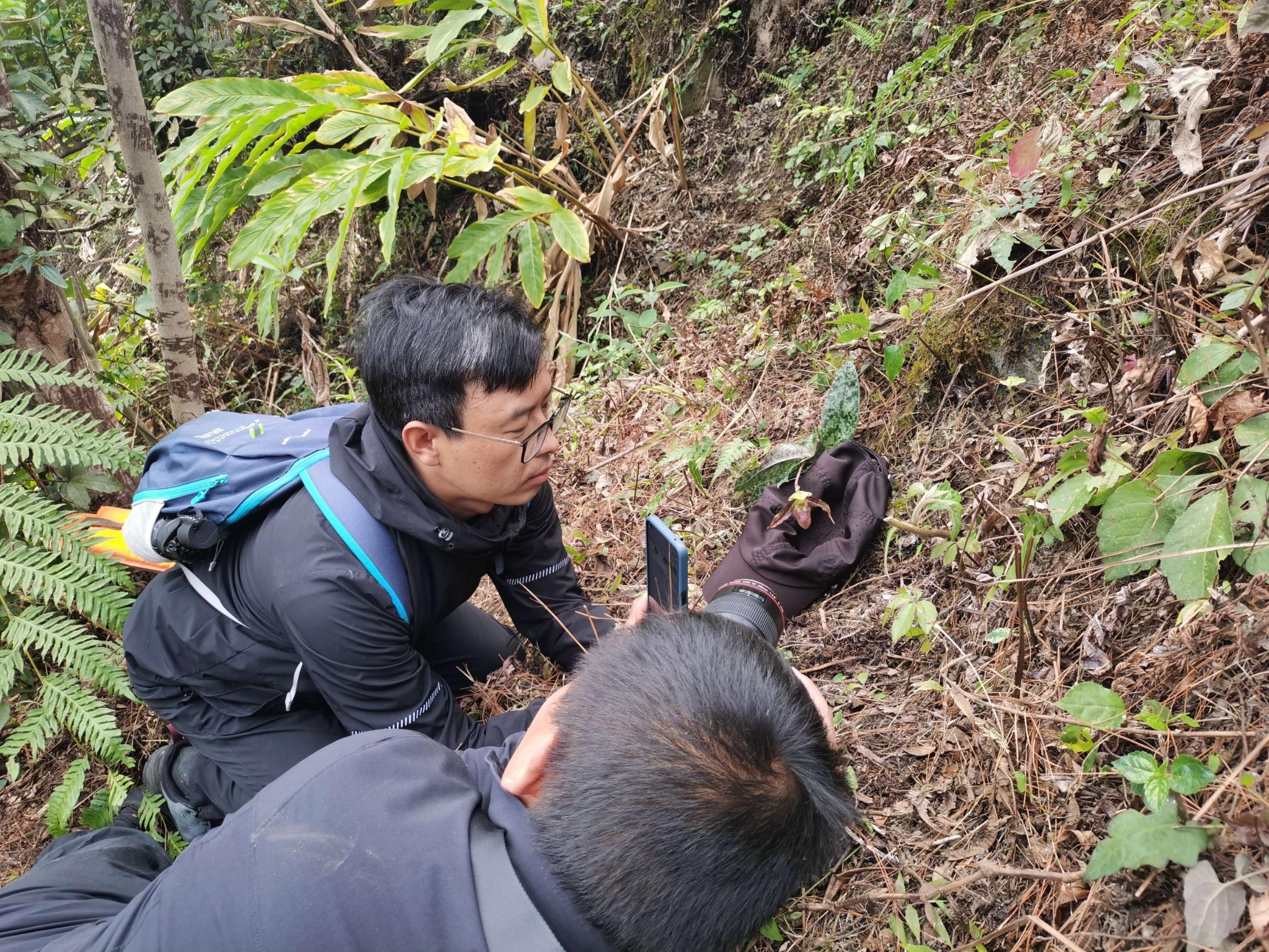 為了調(diào)研野生兜蘭屬植物資源,高黎貢山國(guó)家級(jí)自然保護(hù)區(qū)福貢管護(hù)分局于2023年初就開(kāi)始對(duì)兜蘭進(jìn)行了大量的訪(fǎng)談和調(diào)查。經(jīng)過(guò)兩個(gè)月的走訪(fǎng)和野外調(diào)查,于2月27日,在高黎貢山保護(hù)區(qū)海拔1300多米的山坡草叢中,找到了一種兜蘭。經(jīng)中國(guó)科學(xué)院植物研究所金效華研究員鑒定,確定為國(guó)家一級(jí)重點(diǎn)保護(hù)植物——彩云兜蘭。
